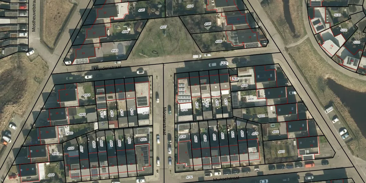 Monsterstraat 2 is gelegen op kadastraal perceel TBG01AG4731. Deze kadastrale aanduiding is uniek en wordt gebruikt door het Kadaster om eigendomsrechten en andere zakelijke rechten vast te leggen. Het perceel maakt onderdeel uit van de kadastrale gemeente Tilburg.