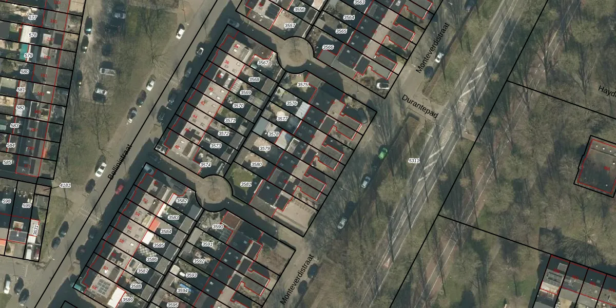Het perceel waarop Monteverdistraat 25 staat heeft een oppervlakte van 183 m². Dit is een middelgroot perceel. De perceeloppervlakte wordt geregistreerd door het Kadaster. Gedetailleerde informatie over de maten van dit perceel kunt u vinden in het rapport Kadastrale kaart met maatvoering van Monteverdistraat 25.