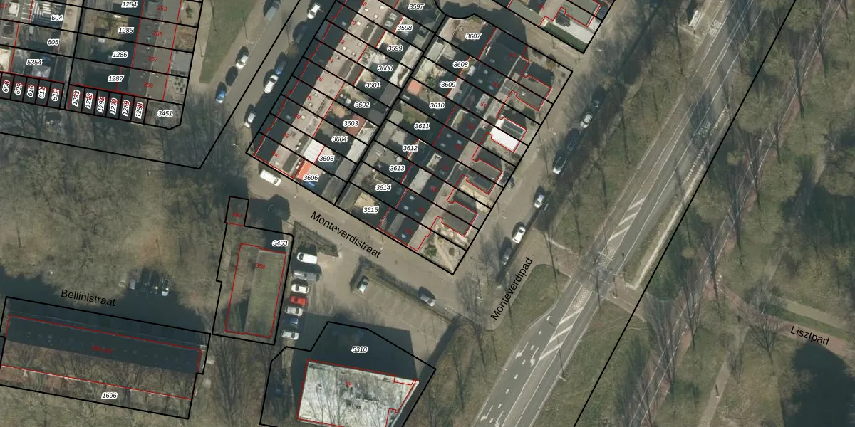 Monteverdistraat 61 is gelegen op kadastraal perceel TBG01S3614. Deze kadastrale aanduiding is uniek en wordt gebruikt door het Kadaster om eigendomsrechten en andere zakelijke rechten vast te leggen. Het perceel maakt onderdeel uit van de kadastrale gemeente Tilburg.