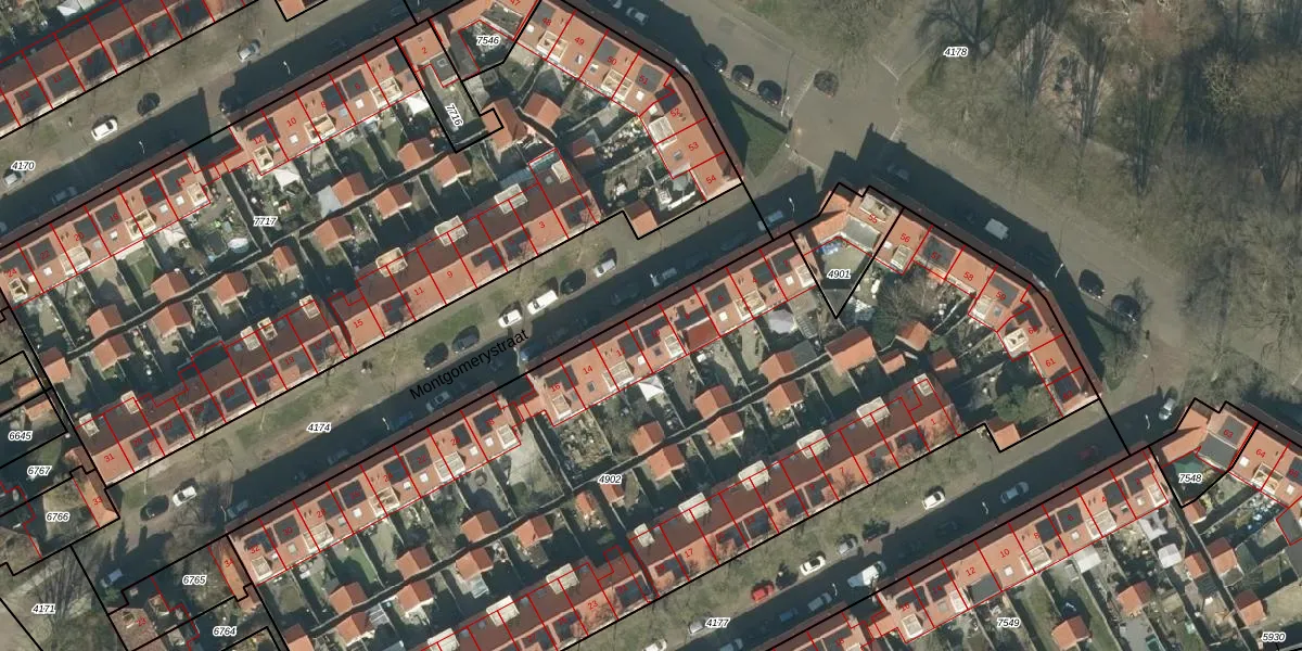 Het perceel waarop Montgomerystraat 10 staat heeft een oppervlakte van 4864 m². Dit is een zeer groot perceel. De perceeloppervlakte wordt geregistreerd door het Kadaster. Gedetailleerde informatie over de maten van dit perceel kunt u vinden in het rapport Kadastrale kaart met maatvoering van Montgomerystraat 10.