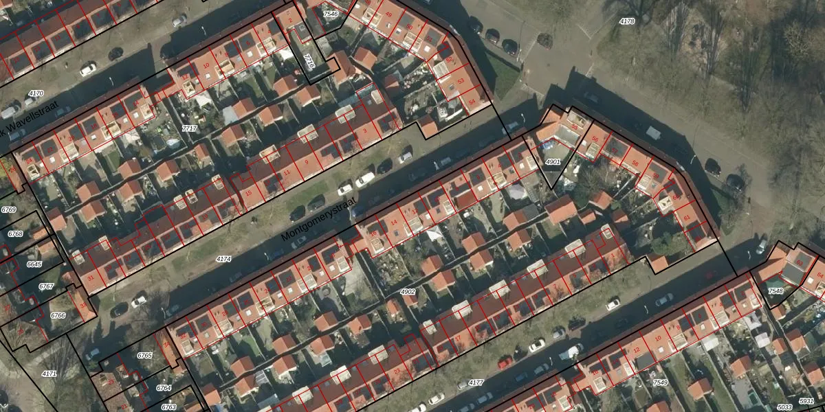 Het perceel waarop Montgomerystraat 12 staat heeft een oppervlakte van 4864 m². Dit is een zeer groot perceel. De perceeloppervlakte wordt geregistreerd door het Kadaster. Gedetailleerde informatie over de maten van dit perceel kunt u vinden in het rapport Kadastrale kaart met maatvoering van Montgomerystraat 12.