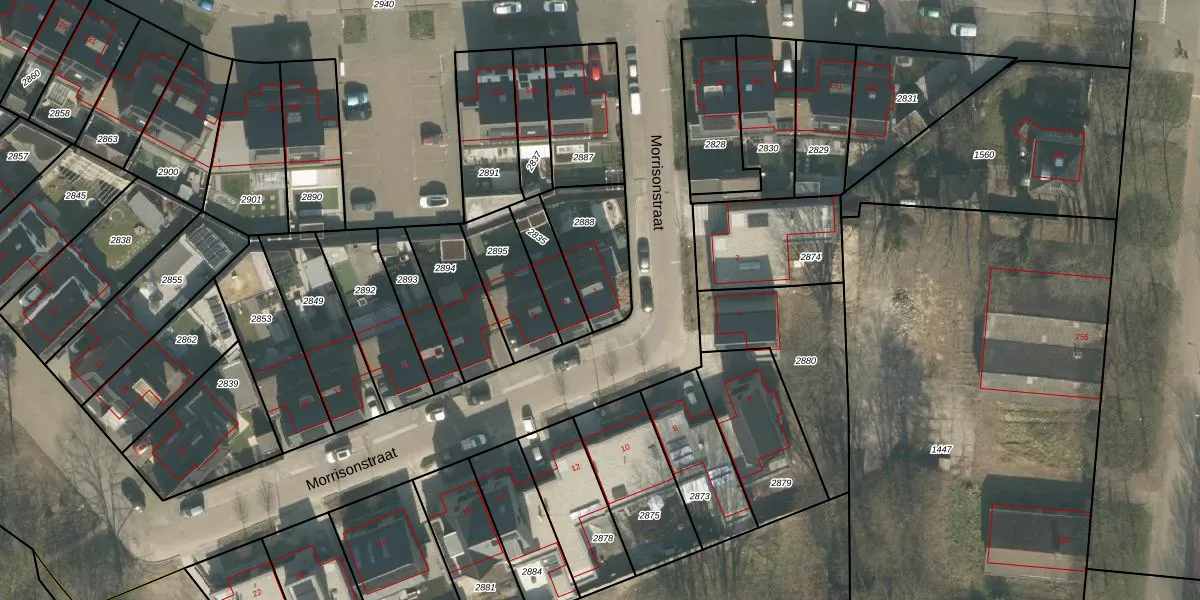 Morrisonstraat 1 is gelegen op kadastraal perceel TBG01T2888. Deze kadastrale aanduiding is uniek en wordt gebruikt door het Kadaster om eigendomsrechten en andere zakelijke rechten vast te leggen. Het perceel maakt onderdeel uit van de kadastrale gemeente Tilburg.
