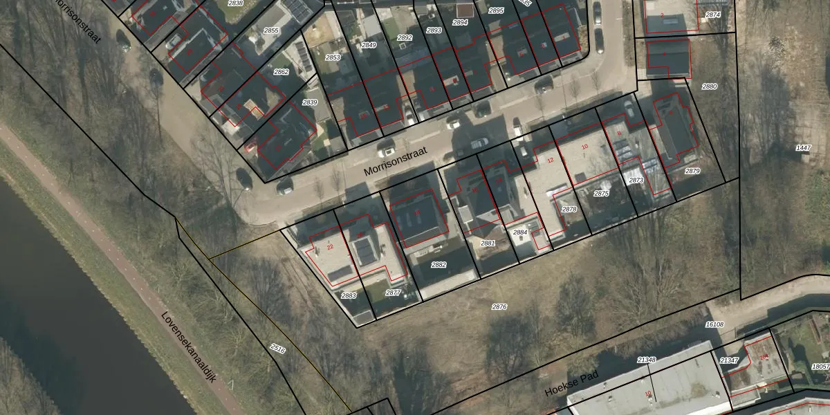 Het perceel waarop Morrisonstraat 18 staat heeft een oppervlakte van 430 m². Dit is een groot perceel. De perceeloppervlakte wordt geregistreerd door het Kadaster. Gedetailleerde informatie over de maten van dit perceel kunt u vinden in het rapport Kadastrale kaart met maatvoering van Morrisonstraat 18.