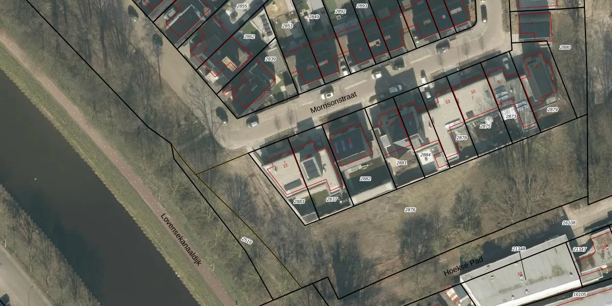 Morrisonstraat 20 is gelegen op kadastraal perceel TBG01T2877. Deze kadastrale aanduiding is uniek en wordt gebruikt door het Kadaster om eigendomsrechten en andere zakelijke rechten vast te leggen. Het perceel maakt onderdeel uit van de kadastrale gemeente Tilburg.