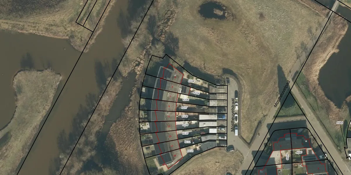 Mostheuvelstraat 5 is gelegen op kadastraal perceel TBG01AG6105. Deze kadastrale aanduiding is uniek en wordt gebruikt door het Kadaster om eigendomsrechten en andere zakelijke rechten vast te leggen. Het perceel maakt onderdeel uit van de kadastrale gemeente Tilburg.