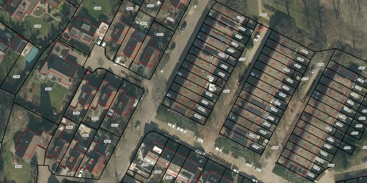 Mozartlaan 222 is gelegen op kadastraal perceel TBG01S4163. Deze kadastrale aanduiding is uniek en wordt gebruikt door het Kadaster om eigendomsrechten en andere zakelijke rechten vast te leggen. Het perceel maakt onderdeel uit van de kadastrale gemeente Tilburg.