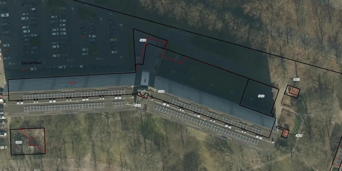 Het perceel waarop Mozartlaan 321 staat heeft een oppervlakte van 3010 m². Dit is een zeer groot perceel. De perceeloppervlakte wordt geregistreerd door het Kadaster. Gedetailleerde informatie over de maten van dit perceel kunt u vinden in het rapport Kadastrale kaart met maatvoering van Mozartlaan 321.