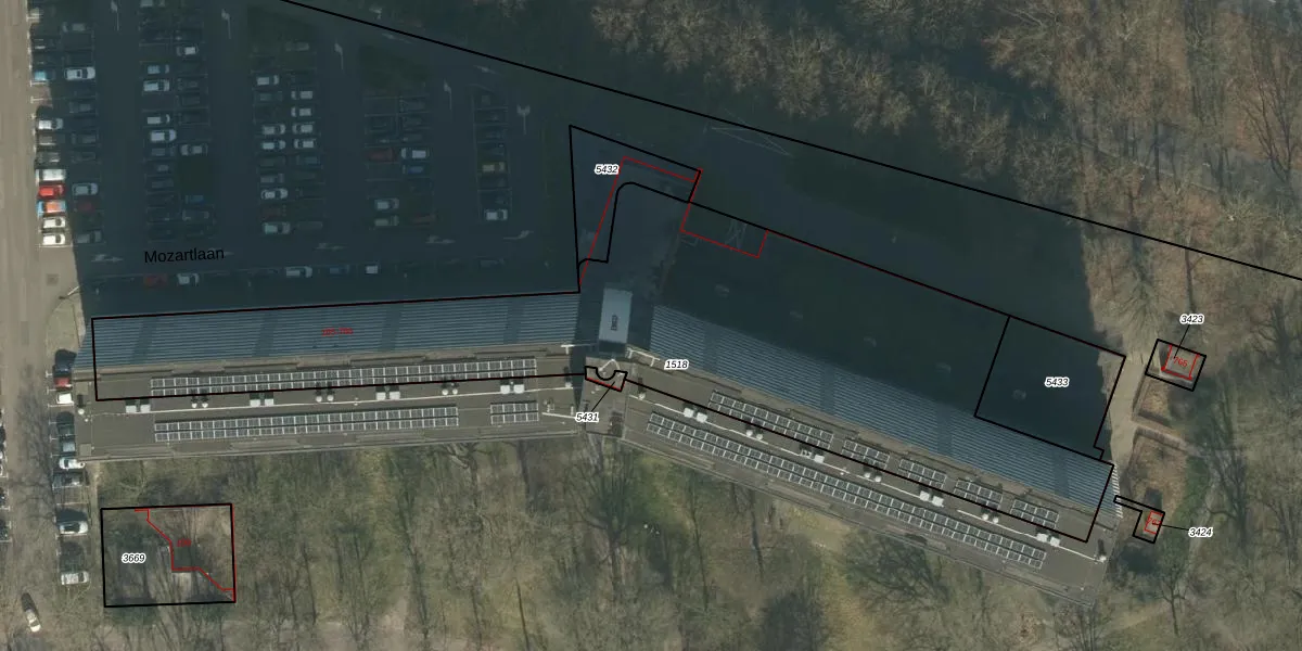 Het perceel waarop Mozartlaan 357 staat heeft een oppervlakte van 3010 m². Dit is een zeer groot perceel. De perceeloppervlakte wordt geregistreerd door het Kadaster. Gedetailleerde informatie over de maten van dit perceel kunt u vinden in het rapport Kadastrale kaart met maatvoering van Mozartlaan 357.