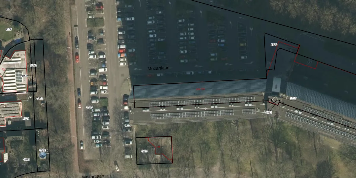 Het perceel waarop Mozartlaan 399 staat heeft een oppervlakte van 3010 m². Dit is een zeer groot perceel. De perceeloppervlakte wordt geregistreerd door het Kadaster. Gedetailleerde informatie over de maten van dit perceel kunt u vinden in het rapport Kadastrale kaart met maatvoering van Mozartlaan 399.