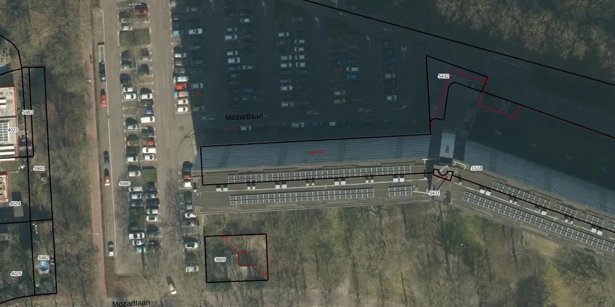Het perceel waarop Mozartlaan 411 staat heeft een oppervlakte van 3010 m². Dit is een zeer groot perceel. De perceeloppervlakte wordt geregistreerd door het Kadaster. Gedetailleerde informatie over de maten van dit perceel kunt u vinden in het rapport Kadastrale kaart met maatvoering van Mozartlaan 411.