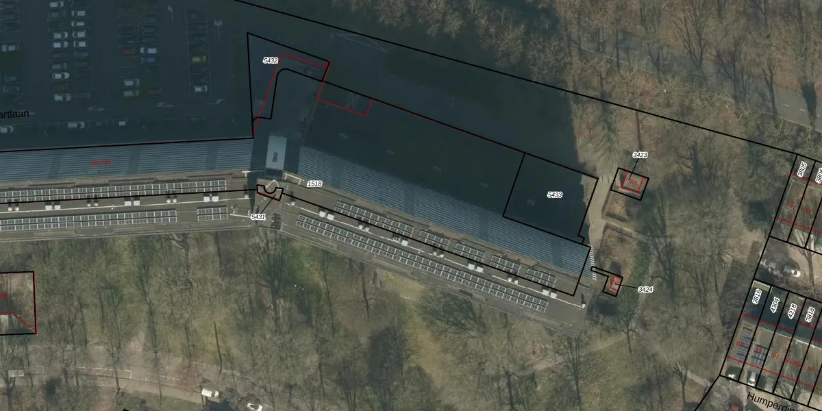 Het perceel waarop Mozartlaan 427 staat heeft een oppervlakte van 3010 m². Dit is een zeer groot perceel. De perceeloppervlakte wordt geregistreerd door het Kadaster. Gedetailleerde informatie over de maten van dit perceel kunt u vinden in het rapport Kadastrale kaart met maatvoering van Mozartlaan 427.