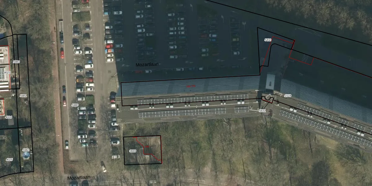 Het perceel waarop Mozartlaan 539 staat heeft een oppervlakte van 3010 m². Dit is een zeer groot perceel. De perceeloppervlakte wordt geregistreerd door het Kadaster. Gedetailleerde informatie over de maten van dit perceel kunt u vinden in het rapport Kadastrale kaart met maatvoering van Mozartlaan 539.
