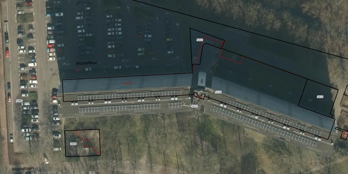 Het perceel waarop Mozartlaan 545 staat heeft een oppervlakte van 3010 m². Dit is een zeer groot perceel. De perceeloppervlakte wordt geregistreerd door het Kadaster. Gedetailleerde informatie over de maten van dit perceel kunt u vinden in het rapport Kadastrale kaart met maatvoering van Mozartlaan 545.