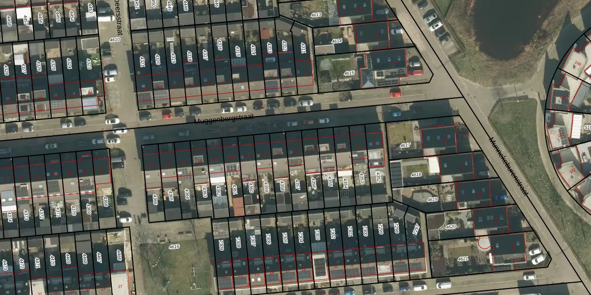 Muggenbergstraat 12 is gelegen op kadastraal perceel TBG01AG4357. Deze kadastrale aanduiding is uniek en wordt gebruikt door het Kadaster om eigendomsrechten en andere zakelijke rechten vast te leggen. Het perceel maakt onderdeel uit van de kadastrale gemeente Tilburg.