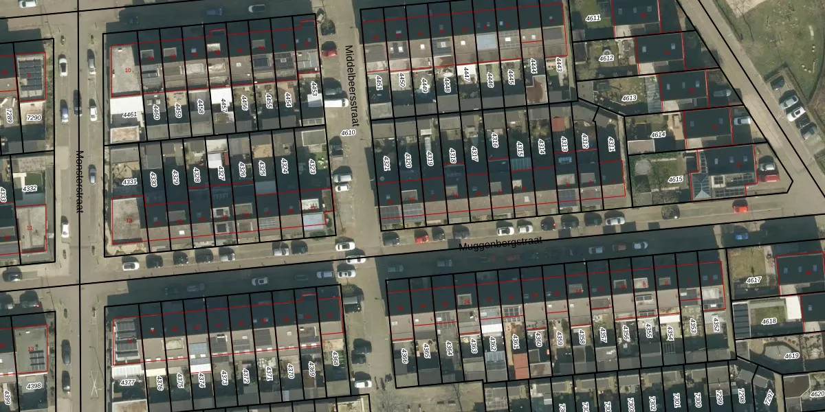 Muggenbergstraat 19 is gelegen op kadastraal perceel TBG01AG4320. Deze kadastrale aanduiding is uniek en wordt gebruikt door het Kadaster om eigendomsrechten en andere zakelijke rechten vast te leggen. Het perceel maakt onderdeel uit van de kadastrale gemeente Tilburg.