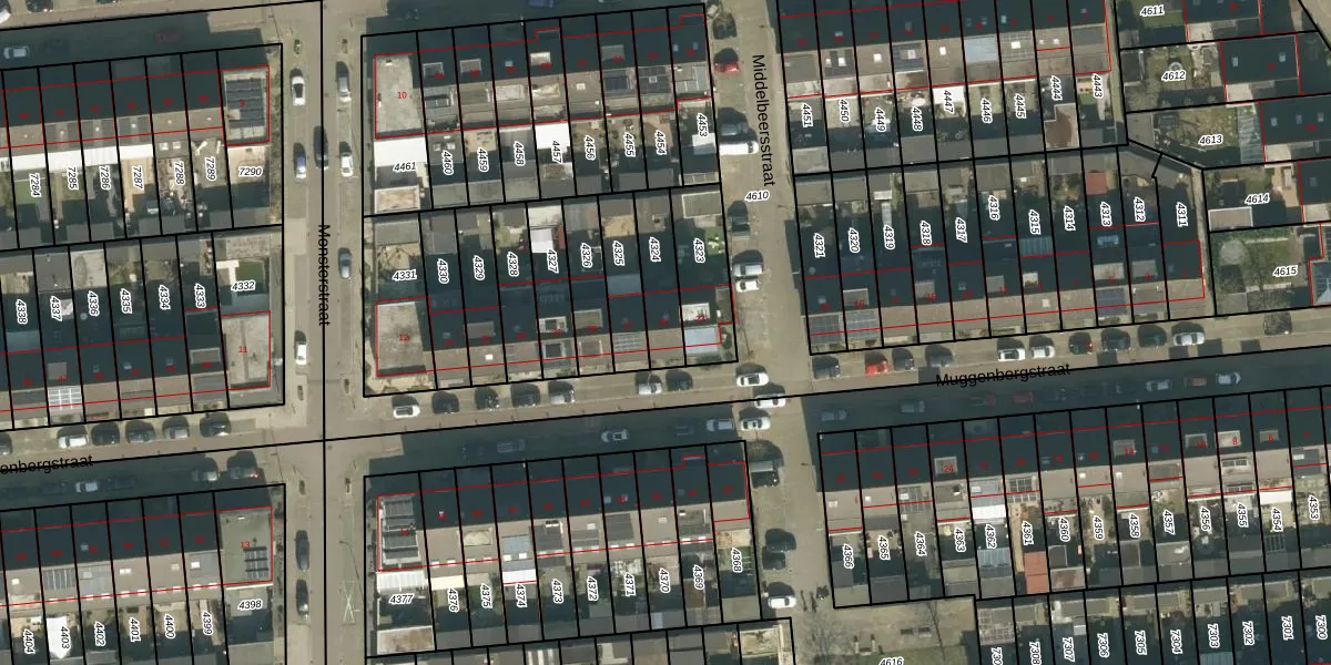 Muggenbergstraat 25 is gelegen op kadastraal perceel TBG01AG4324. Deze kadastrale aanduiding is uniek en wordt gebruikt door het Kadaster om eigendomsrechten en andere zakelijke rechten vast te leggen. Het perceel maakt onderdeel uit van de kadastrale gemeente Tilburg.