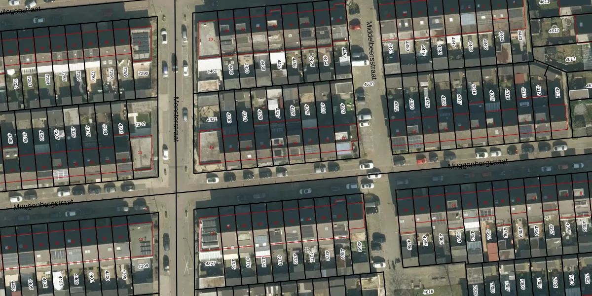 Muggenbergstraat 29 is gelegen op kadastraal perceel TBG01AG4326. Deze kadastrale aanduiding is uniek en wordt gebruikt door het Kadaster om eigendomsrechten en andere zakelijke rechten vast te leggen. Het perceel maakt onderdeel uit van de kadastrale gemeente Tilburg.
