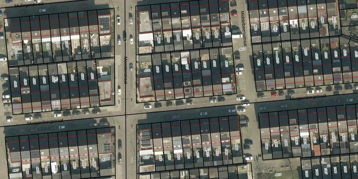 Muggenbergstraat 33 is gelegen op kadastraal perceel TBG01AG4328. Deze kadastrale aanduiding is uniek en wordt gebruikt door het Kadaster om eigendomsrechten en andere zakelijke rechten vast te leggen. Het perceel maakt onderdeel uit van de kadastrale gemeente Tilburg.