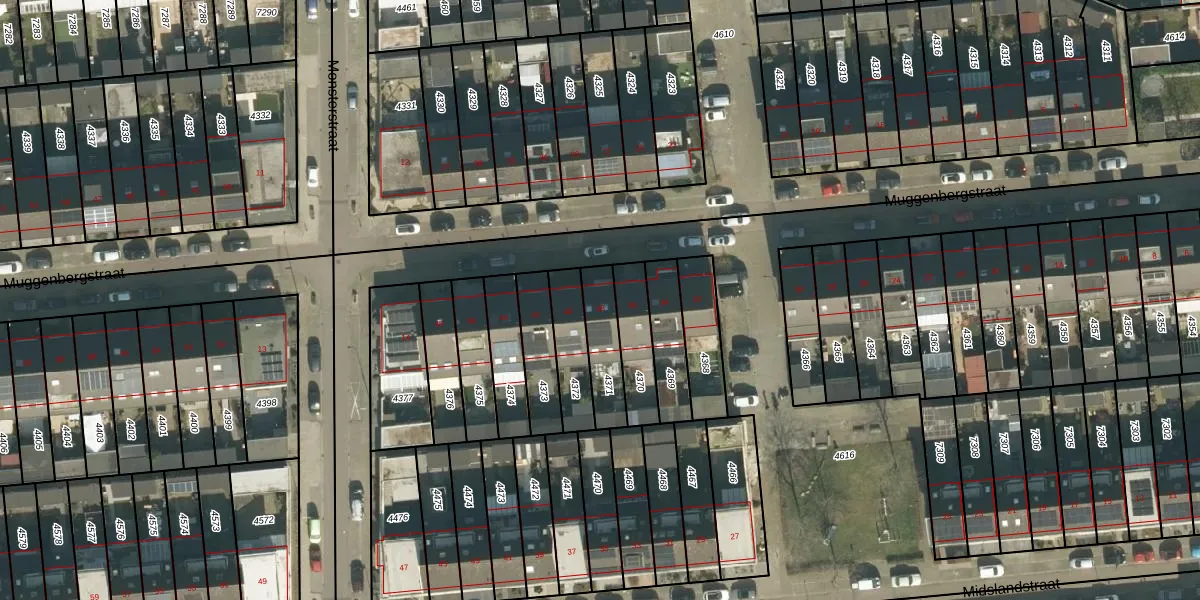 Muggenbergstraat 38 is gelegen op kadastraal perceel TBG01AG4371. Deze kadastrale aanduiding is uniek en wordt gebruikt door het Kadaster om eigendomsrechten en andere zakelijke rechten vast te leggen. Het perceel maakt onderdeel uit van de kadastrale gemeente Tilburg.