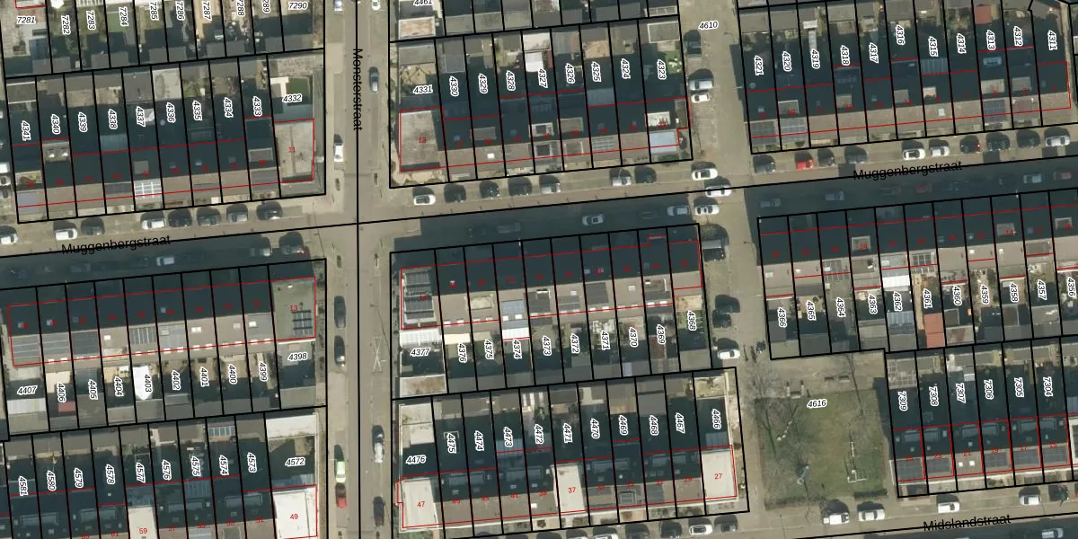 Muggenbergstraat 42 is gelegen op kadastraal perceel TBG01AG4373. Deze kadastrale aanduiding is uniek en wordt gebruikt door het Kadaster om eigendomsrechten en andere zakelijke rechten vast te leggen. Het perceel maakt onderdeel uit van de kadastrale gemeente Tilburg.