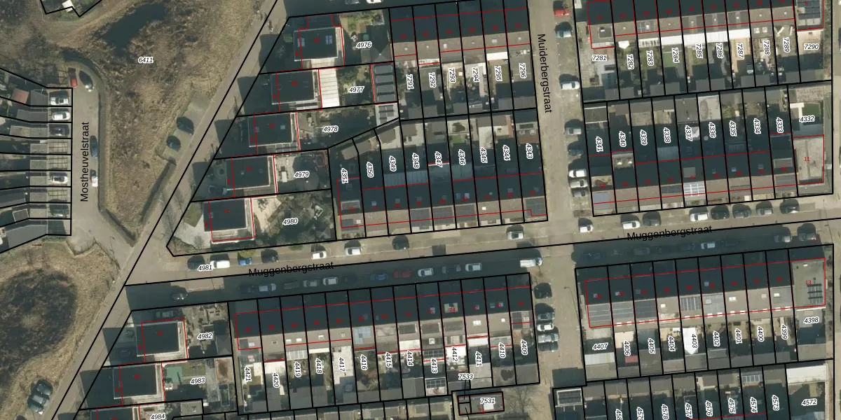 Muggenbergstraat 67 is gelegen op kadastraal perceel TBG01AG4348. Deze kadastrale aanduiding is uniek en wordt gebruikt door het Kadaster om eigendomsrechten en andere zakelijke rechten vast te leggen. Het perceel maakt onderdeel uit van de kadastrale gemeente Tilburg.