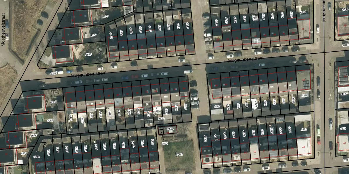 Muggenbergstraat 70 is gelegen op kadastraal perceel TBG01AG4410. Deze kadastrale aanduiding is uniek en wordt gebruikt door het Kadaster om eigendomsrechten en andere zakelijke rechten vast te leggen. Het perceel maakt onderdeel uit van de kadastrale gemeente Tilburg.