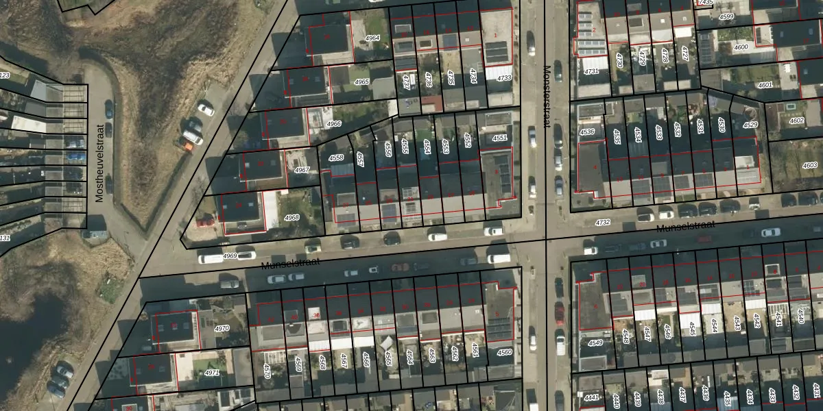 Munselstraat 21 is gelegen op kadastraal perceel TBG01AG4555. Deze kadastrale aanduiding is uniek en wordt gebruikt door het Kadaster om eigendomsrechten en andere zakelijke rechten vast te leggen. Het perceel maakt onderdeel uit van de kadastrale gemeente Tilburg.