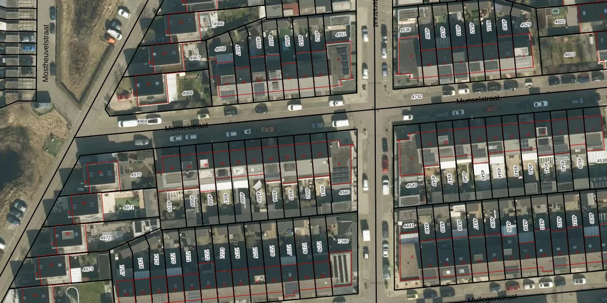 Munselstraat 26 is gelegen op kadastraal perceel TBG01AG4562. Deze kadastrale aanduiding is uniek en wordt gebruikt door het Kadaster om eigendomsrechten en andere zakelijke rechten vast te leggen. Het perceel maakt onderdeel uit van de kadastrale gemeente Tilburg.