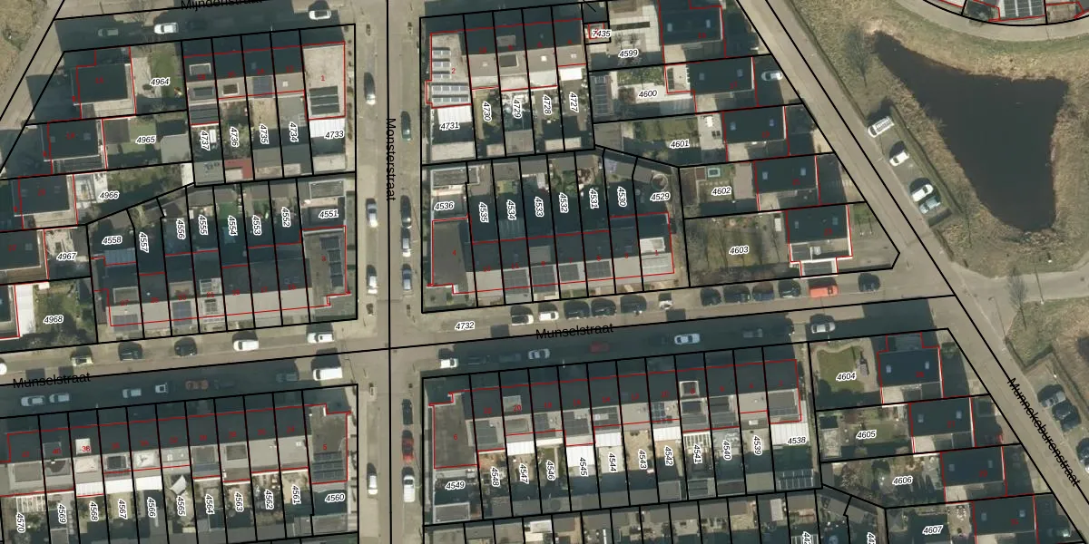 Munselstraat 9 is gelegen op kadastraal perceel TBG01AG4533. Deze kadastrale aanduiding is uniek en wordt gebruikt door het Kadaster om eigendomsrechten en andere zakelijke rechten vast te leggen. Het perceel maakt onderdeel uit van de kadastrale gemeente Tilburg.