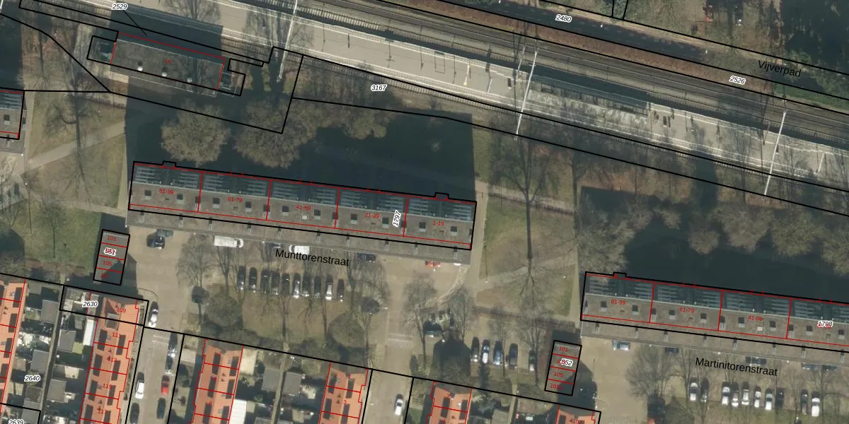 Het perceel waarop Munttorenstraat 13 staat heeft een oppervlakte van 934 m². Dit is een groot perceel. De perceeloppervlakte wordt geregistreerd door het Kadaster. Gedetailleerde informatie over de maten van dit perceel kunt u vinden in het rapport Kadastrale kaart met maatvoering van Munttorenstraat 13.