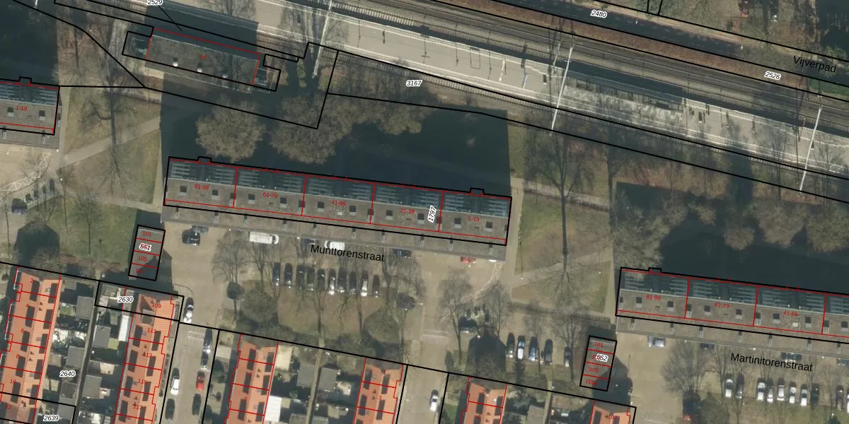 Het perceel waarop Munttorenstraat 25 staat heeft een oppervlakte van 934 m². Dit is een groot perceel. De perceeloppervlakte wordt geregistreerd door het Kadaster. Gedetailleerde informatie over de maten van dit perceel kunt u vinden in het rapport Kadastrale kaart met maatvoering van Munttorenstraat 25.