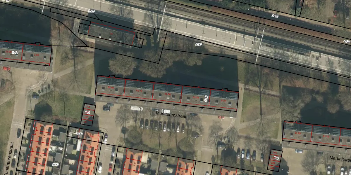 Het perceel waarop Munttorenstraat 49 staat heeft een oppervlakte van 934 m². Dit is een groot perceel. De perceeloppervlakte wordt geregistreerd door het Kadaster. Gedetailleerde informatie over de maten van dit perceel kunt u vinden in het rapport Kadastrale kaart met maatvoering van Munttorenstraat 49.