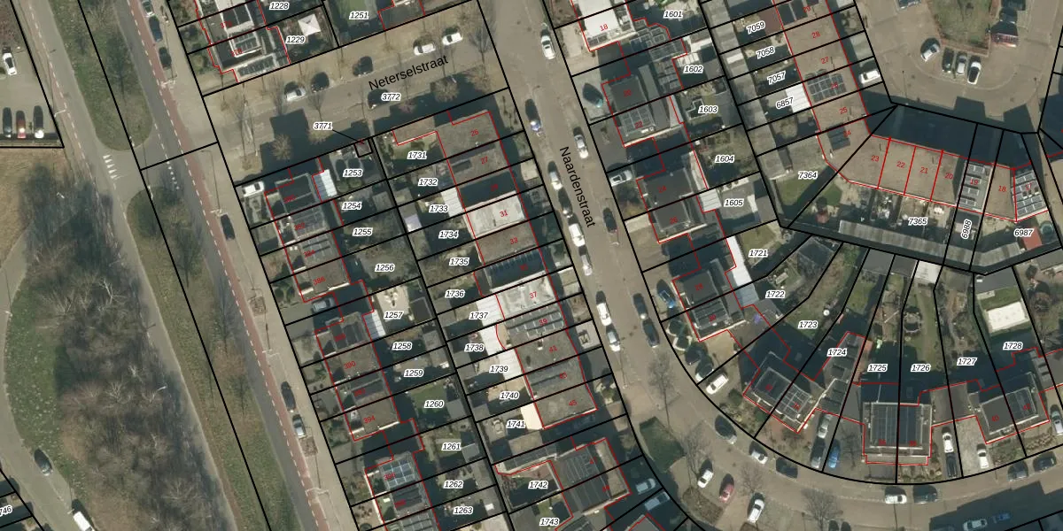 Naardenstraat 35 is gelegen op kadastraal perceel TBG01AG1736. Deze kadastrale aanduiding is uniek en wordt gebruikt door het Kadaster om eigendomsrechten en andere zakelijke rechten vast te leggen. Het perceel maakt onderdeel uit van de kadastrale gemeente Tilburg.