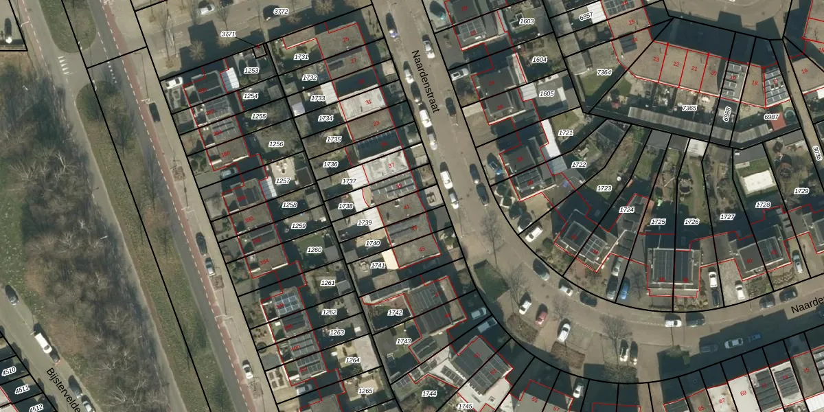 Naardenstraat 41 is gelegen op kadastraal perceel TBG01AG1739. Deze kadastrale aanduiding is uniek en wordt gebruikt door het Kadaster om eigendomsrechten en andere zakelijke rechten vast te leggen. Het perceel maakt onderdeel uit van de kadastrale gemeente Tilburg.