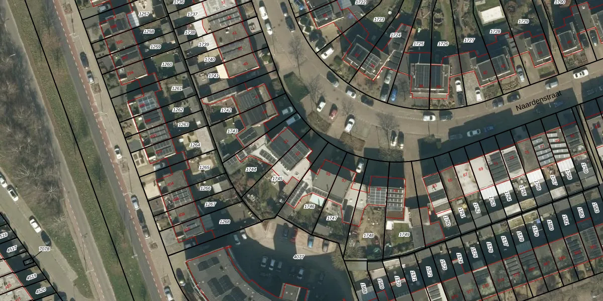 Naardenstraat 53 is gelegen op kadastraal perceel TBG01AG1745. Deze kadastrale aanduiding is uniek en wordt gebruikt door het Kadaster om eigendomsrechten en andere zakelijke rechten vast te leggen. Het perceel maakt onderdeel uit van de kadastrale gemeente Tilburg.