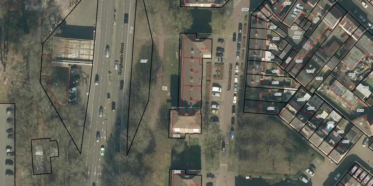 Nassaustraat 109 is gelegen op kadastraal perceel TBG01O3482. Deze kadastrale aanduiding is uniek en wordt gebruikt door het Kadaster om eigendomsrechten en andere zakelijke rechten vast te leggen. Het perceel maakt onderdeel uit van de kadastrale gemeente Tilburg.