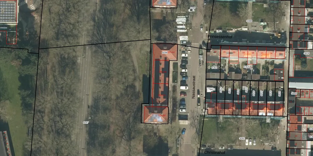 Het perceel waarop Nassaustraat 259 staat heeft een oppervlakte van 751 m². Dit is een groot perceel. De perceeloppervlakte wordt geregistreerd door het Kadaster. Gedetailleerde informatie over de maten van dit perceel kunt u vinden in het rapport Kadastrale kaart met maatvoering van Nassaustraat 259.