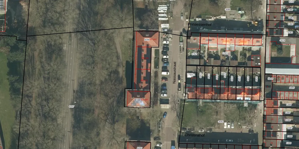 Het perceel waarop Nassaustraat 261 staat heeft een oppervlakte van 751 m². Dit is een groot perceel. De perceeloppervlakte wordt geregistreerd door het Kadaster. Gedetailleerde informatie over de maten van dit perceel kunt u vinden in het rapport Kadastrale kaart met maatvoering van Nassaustraat 261.