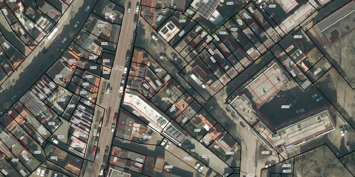 Nazarethstraat 5 is gelegen op kadastraal perceel TBG01M8166. Deze kadastrale aanduiding is uniek en wordt gebruikt door het Kadaster om eigendomsrechten en andere zakelijke rechten vast te leggen. Het perceel maakt onderdeel uit van de kadastrale gemeente Tilburg.