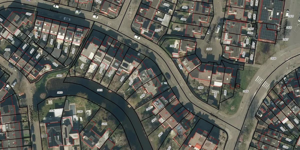 Niers 18 is gelegen op kadastraal perceel TBG01AA1407. Deze kadastrale aanduiding is uniek en wordt gebruikt door het Kadaster om eigendomsrechten en andere zakelijke rechten vast te leggen. Het perceel maakt onderdeel uit van de kadastrale gemeente Tilburg.