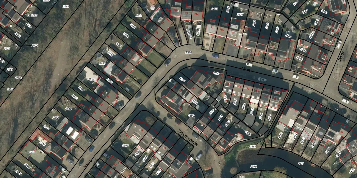 Niers 38 is gelegen op kadastraal perceel TBG01AA1599. Deze kadastrale aanduiding is uniek en wordt gebruikt door het Kadaster om eigendomsrechten en andere zakelijke rechten vast te leggen. Het perceel maakt onderdeel uit van de kadastrale gemeente Tilburg.