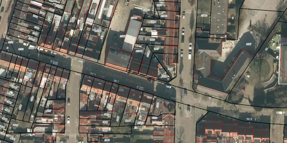 Het perceel waarop Nieuwstraat 7 staat heeft een oppervlakte van 115 m². Dit is een middelgroot perceel. De perceeloppervlakte wordt geregistreerd door het Kadaster. Gedetailleerde informatie over de maten van dit perceel kunt u vinden in het rapport Kadastrale kaart met maatvoering van Nieuwstraat 7.