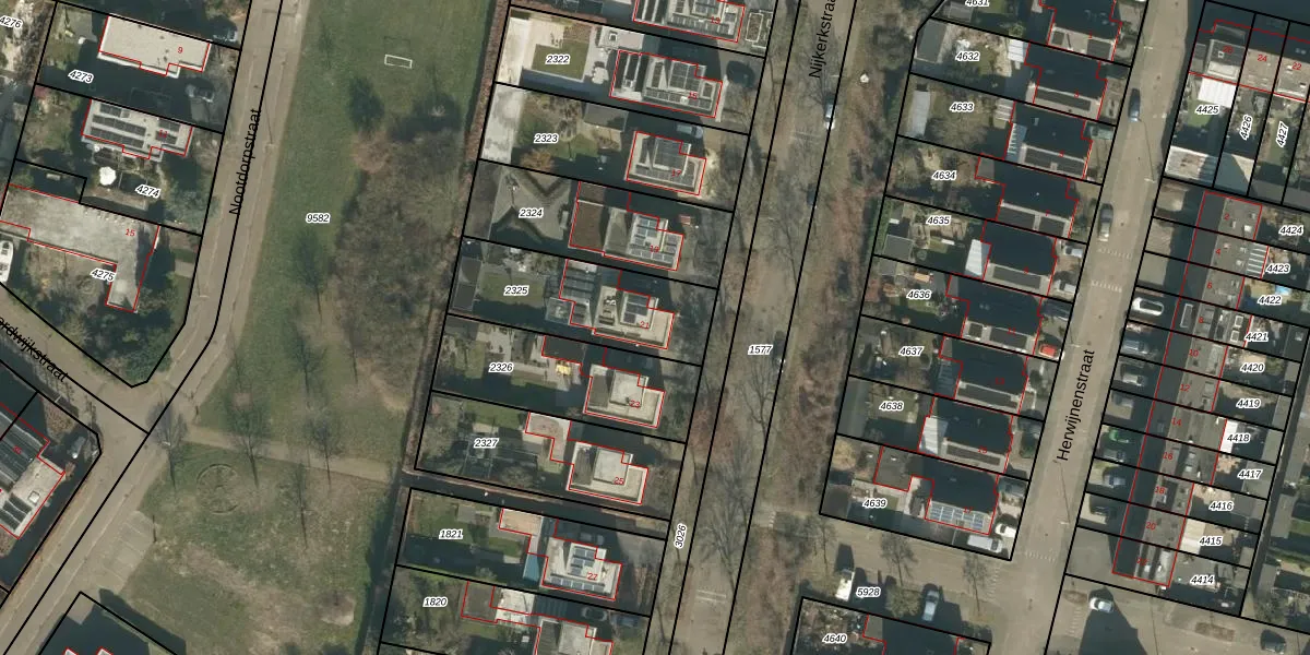 Het perceel waarop Nijkerkstraat 21 staat heeft een oppervlakte van 480 m². Dit is een groot perceel. De perceeloppervlakte wordt geregistreerd door het Kadaster. Gedetailleerde informatie over de maten van dit perceel kunt u vinden in het rapport Kadastrale kaart met maatvoering van Nijkerkstraat 21.