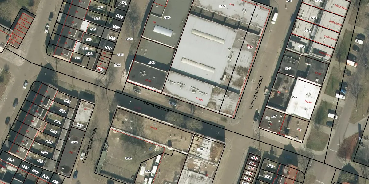 Het perceel waarop Nimrodstraat 29 staat heeft een oppervlakte van 2102 m². Dit is een zeer groot perceel. De perceeloppervlakte wordt geregistreerd door het Kadaster. Gedetailleerde informatie over de maten van dit perceel kunt u vinden in het rapport Kadastrale kaart met maatvoering van Nimrodstraat 29.