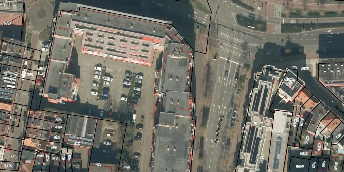 Noordhoekring 3-46 is gelegen op kadastraal perceel TBG01P7366. Deze kadastrale aanduiding is uniek en wordt gebruikt door het Kadaster om eigendomsrechten en andere zakelijke rechten vast te leggen. Het perceel maakt onderdeel uit van de kadastrale gemeente Tilburg.