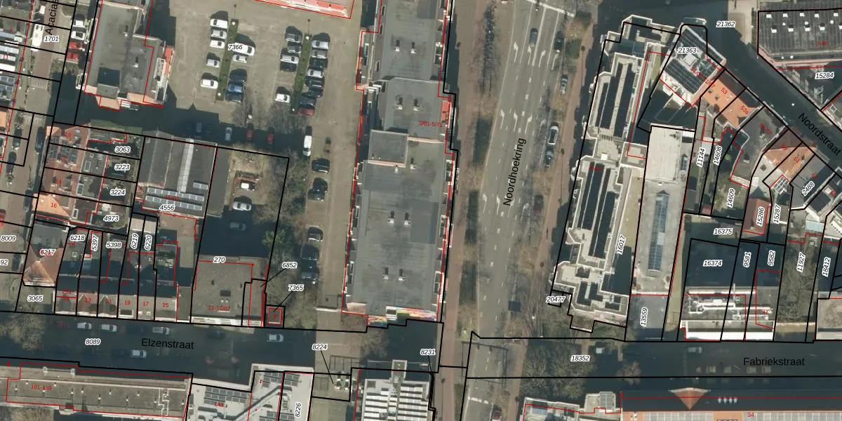 Het perceel waarop Noordhoekring 5-22 staat heeft een oppervlakte van 6631 m². Dit is een zeer groot perceel. De perceeloppervlakte wordt geregistreerd door het Kadaster. Gedetailleerde informatie over de maten van dit perceel kunt u vinden in het rapport Kadastrale kaart met maatvoering van Noordhoekring 5-22.