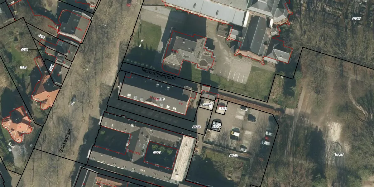 Het perceel waarop Norbertijnerpoort 2 staat heeft een oppervlakte van 657 m². Dit is een groot perceel. De perceeloppervlakte wordt geregistreerd door het Kadaster. Gedetailleerde informatie over de maten van dit perceel kunt u vinden in het rapport Kadastrale kaart met maatvoering van Norbertijnerpoort 2.