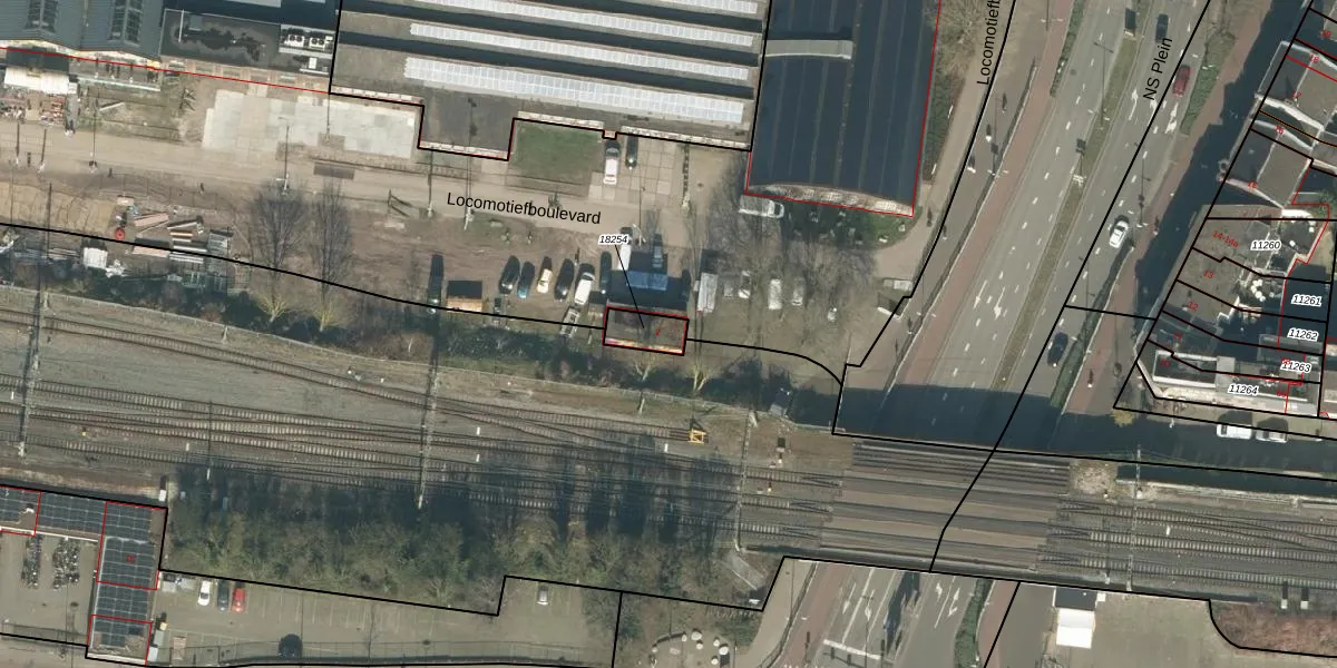 Het perceel waarop NS Plein 2 staat heeft een oppervlakte van 65 m². Dit is een klein perceel. De perceeloppervlakte wordt geregistreerd door het Kadaster. Gedetailleerde informatie over de maten van dit perceel kunt u vinden in het rapport Kadastrale kaart met maatvoering van NS Plein 2.