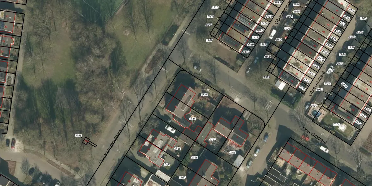 Het perceel waarop Obrechtstraat 1 staat heeft een oppervlakte van 416 m². Dit is een groot perceel. De perceeloppervlakte wordt geregistreerd door het Kadaster. Gedetailleerde informatie over de maten van dit perceel kunt u vinden in het rapport Kadastrale kaart met maatvoering van Obrechtstraat 1.