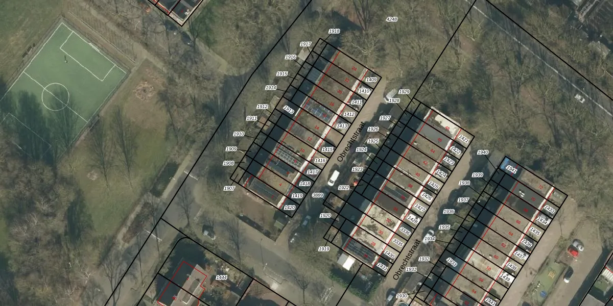 Het perceel waarop Obrechtstraat 10 staat heeft een oppervlakte van 95 m². Dit is een klein perceel. De perceeloppervlakte wordt geregistreerd door het Kadaster. Gedetailleerde informatie over de maten van dit perceel kunt u vinden in het rapport Kadastrale kaart met maatvoering van Obrechtstraat 10.